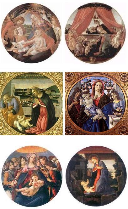 それでは、トンド(円形)形式の「聖母子」を紹介します。左上の「マニフィカトの聖母子」は、実は描きこまれた人物が二人います。